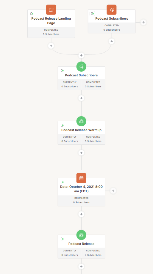 - Visual workflows. You drag lines to connect triggers (like clicking a link) to actions (like adding a tag)
